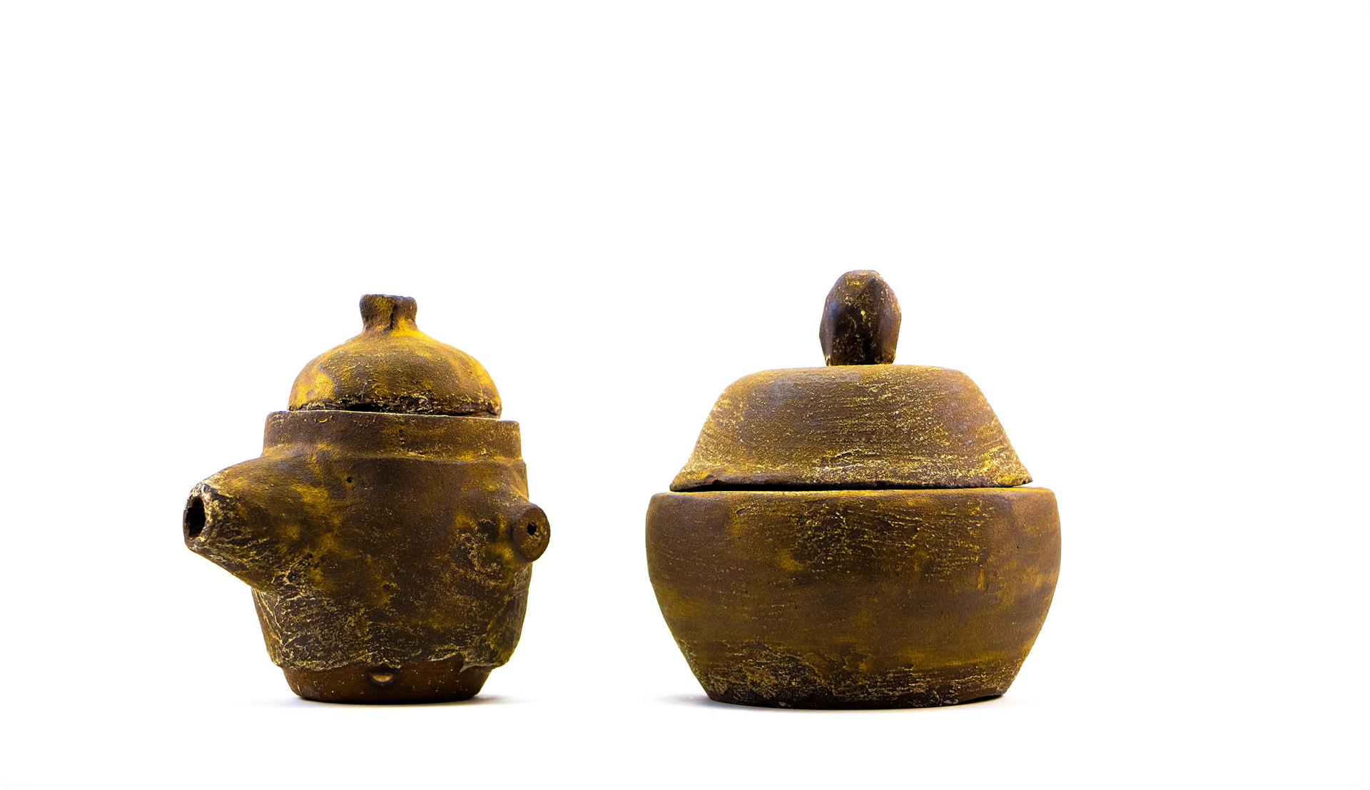 Photography of cuban plastic artist Gabriela Martinez collection in which she reproduces ancient vessels.
